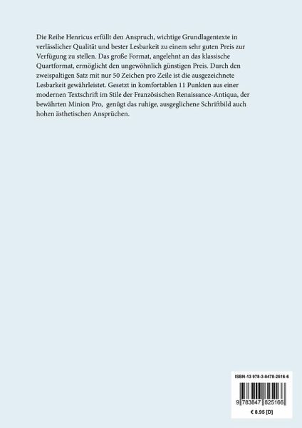 Ludwig Ganghofer: Schloß Hubertus. Historischer Roman Großformat, 210 x 297 mm, zweispaltiger Satz Berliner Ausgabe, 2019 Durchgesehener Neusatz mit einer Biographie des Autors bearbeitet und eingerichtet von Theodor Borken Die Reihe Henricus erfüllt den Anspruch, wichtige Grundlagentexte in verlässlicher Qualität und bester Lesbarkeit zu einem sehr guten Preis zur Verfügung zu stellen. Das große Format, angelehnt an das klassische Quartformat, ermöglicht den ungewöhnlich günstigen Preis. Durch den zweispaltigen Satz mit nur 50 Zeichen pro Zeile ist die ausgezeichnete Lesbarkeit gewährleistet. Gesetzt in komfortablen 11 Punkten aus einer modernen Textschrift im Stile der Französischen Renaissance-Antiqua, der bewährten Minion Pro, genügt das ruhige, ausgeglichene Schriftbild auch hohen ästhetischen Ansprüchen. Erstdruck: Stuttgart (Bonz) 1895. Neuausgabe mit einer Biographie des Autors. Großformat, 210 x 297 mm, zweispaltiger Satz Herausgegeben von Theodor Borken. Berlin 2019. Textgrundlage ist die Ausgabe: Ludwig Ganghofer: Schloß Hubertus, Berlin: Deutsche Buchgemeinschaft, [1917]. Umschlaggestaltung von Thomas Schultz-Overhage unter Verwendung des Bildes: Schloss Anif von Nordwesten gesehen, von Matthias Kabel, 2007, Ausschnitt, Creative-Commons-Lizenz »Namensnennung 2.5 generisch«, https://commons.wikimedia.org/wiki/File:Wasserschloss_Anif_02.jpg. Gesetzt aus der Minion Pro, 11 pt.