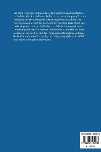 Ludwig Ganghofer: Schloß Hubertus. Historischer Roman Großformat, 210 x 297 mm, zweispaltiger Satz Berliner Ausgabe, 2019 Durchgesehener Neusatz mit einer Biographie des Autors bearbeitet und eingerichtet von Theodor Borken Die Reihe Henricus erfüllt den Anspruch, wichtige Grundlagentexte in verlässlicher Qualität und bester Lesbarkeit zu einem sehr guten Preis zur Verfügung zu stellen. Das große Format, angelehnt an das klassische Quartformat, ermöglicht den ungewöhnlich günstigen Preis. Durch den zweispaltigen Satz mit nur 50 Zeichen pro Zeile ist die ausgezeichnete Lesbarkeit gewährleistet. Gesetzt in komfortablen 11 Punkten aus einer modernen Textschrift im Stile der Französischen Renaissance-Antiqua, der bewährten Minion Pro, genügt das ruhige, ausgeglichene Schriftbild auch hohen ästhetischen Ansprüchen. Erstdruck: Stuttgart (Bonz) 1895. Neuausgabe mit einer Biographie des Autors. Großformat, 210 x 297 mm, zweispaltiger Satz Herausgegeben von Theodor Borken. Berlin 2019. Textgrundlage ist die Ausgabe: Ludwig Ganghofer: Schloß Hubertus, Berlin: Deutsche Buchgemeinschaft, [1917]. Umschlaggestaltung von Thomas Schultz-Overhage unter Verwendung des Bildes: Schloss Anif von Nordwesten gesehen, von Matthias Kabel, 2007, Ausschnitt, Creative-Commons-Lizenz »Namensnennung 2.5 generisch«, https://commons.wikimedia.org/wiki/File:Wasserschloss_Anif_02.jpg. Gesetzt aus der Minion Pro, 11 pt.