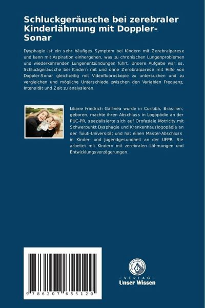 Dysphagie ist ein sehr häufiges Symptom bei Kindern mit Zerebralparese und kann mit Aspiration einhergehen, was zu chronischen Lungenproblemen und wiederkehrenden Lungenentzündungen führt. Unsere Aufgabe war es, Schluckgeräusche bei Kindern mit und ohne Zerebralparese mit Hilfe von Doppler-Sonar gleichzeitig mit Videofluoroskopie zu untersuchen und zu vergleichen und mögliche Unterschiede zwischen den Variablen Frequenz, Intensität und Zeit zu analysieren.