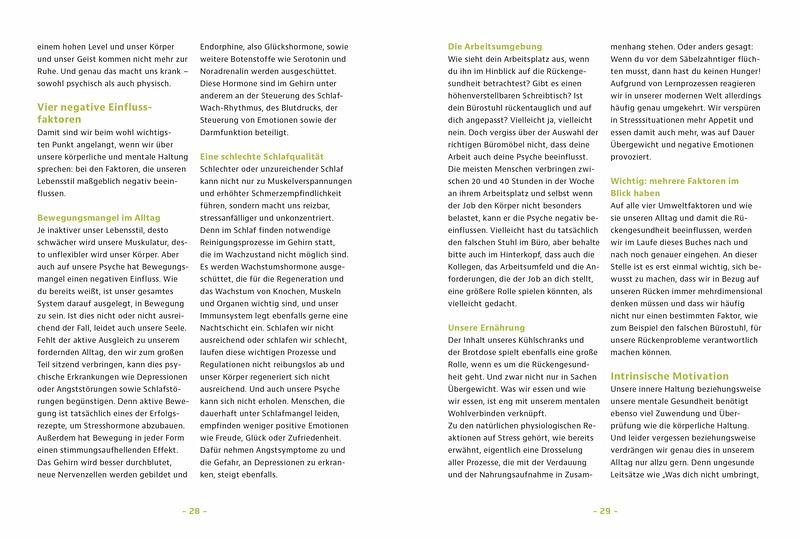 „In diesem Buch hingegen erfährst du, wie Rückenschmerzen entstehen, was in deinem Körper passiert und wie du mit bewährten Methoden und effektiven Übungen selbst die Kontrolle über deine Gesundheit übernehmen kannst.“ (S.