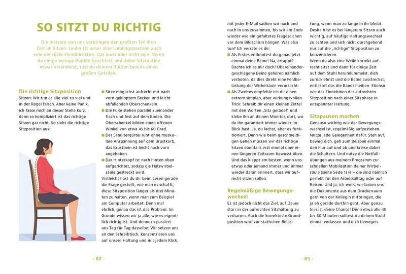 „In diesem Buch hingegen erfährst du, wie Rückenschmerzen entstehen, was in deinem Körper passiert und wie du mit bewährten Methoden und effektiven Übungen selbst die Kontrolle über deine Gesundheit übernehmen kannst.“ (S. 7)