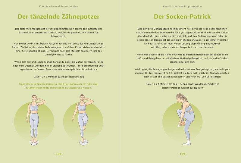 Orthopäde und „Revierdoc“ Dr. Matthias Manke ist mir schon von zwei seiner früheren Publikationen ein Begriff. Da mich diese auch schon überzeugt hatten, war ich entsprechend gespannt auf sein neustes Buch. Schon die aufklappbaren Umschlaginnenseiten geben uns einen ersten, guten Überblick über das, was uns erwartet: Eine Übersicht über die sechs Kategorien der 30 verschiedenen Übungen sowie zwei konkrete Trainingspläne (mit 3 bzw. 7 Übungseinheiten pro Woche). Das ist schon mal ein schneller und „barrierefreier“ Einstieg in das Buch.