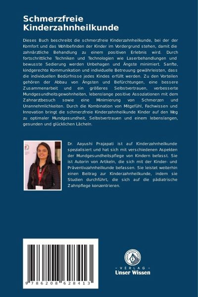Dieses Buch beschreibt die schmerzfreie Kinderzahnheilkunde, bei der der Komfort und das Wohlbefinden der Kinder im Vordergrund stehen, damit die zahnärztliche Behandlung zu einem positiven Erlebnis wird. Durch fortschrittliche Techniken und Technologien wie Laserbehandlungen und bewusste Sedierung werden Unbehagen und Ängste minimiert. Sanfte, kindgerechte Kommunikation und individuelle Betreuung gewährleisten, dass die individuellen Bedürfnisse jedes Kindes erfüllt werden. Zu den Vorteilen gehören der Abbau von Ängsten und Befürchtungen, eine bessere Zusammenarbeit und ein größeres Selbstvertrauen, verbesserte Mundgesundheitsgewohnheiten, lebenslange positive Assoziationen mit dem Zahnarztbesuch sowie eine Minimierung von Schmerzen und Unannehmlichkeiten. Durch die Kombination von Mitgefühl, Fachwissen und Innovation bringt die schmerzfreie Kinderzahnheilkunde Kinder auf den Weg zu optimaler Mundgesundheit, Selbstvertrauen und einem lebenslangen, gesunden und glücklichen Lächeln