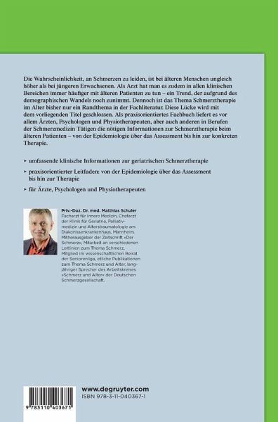 Als praxisorientiertes Fachbuch liefert es vor allem Ärzten, Psychologen und Physiotherapeuten, aber auch anderen in Berufen der Schmerzmedizin Tätigen die nötigen Informationen zur Schmerztherapie beim älteren Patienten - von der Epidemiologie über das Assessment bis hin zur konkreten Therapie.