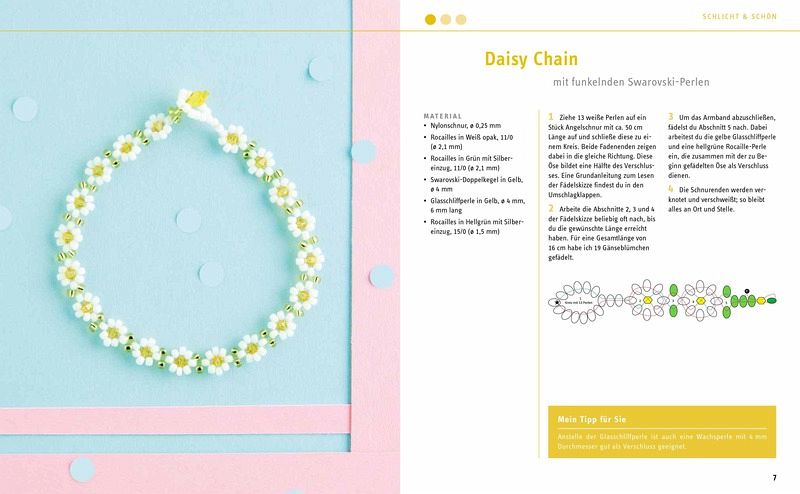 Fädelanleitungen für Perlenschmucku.a. Freundschaftsarmbänder, Halsketten, Anhänger, Ohrringeindividuelle Schmuckstücke selbst kreierenvielseitig kombinierbare Fädelmuster