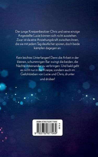 Der junge Kneipenbesitzer Chris und seine einzige Angestellte Lucie können sich nicht ausstehen. Zwar ist da eine Anziehungskraft zwischen ihnen, die sie mit jedem Tag deutlicher spüren, doch beide kämpfen dagegen an.Kein leichtes Unterfangen! Denn die Arbeit in der kleinen, schummrigen Bar zwingt die beiden, die Nächte miteinander zu verbringen. Und bald geht es nicht nur in der Kneipe, sondern auch in der Gefühlswelt von Lucie und Chris, drunter und drüber!Eine romantische Geschichte mit liebenswerten Charakteren, Humor und viel Gefühl.Eine E-Book-Version dieses Romans erschien unter demTitel 'Die Weihnachtsbar der 1000 Sterne' in der Verlagsgruppe HarperCollins, Hamburg und war bis Dezember 2019 erhältlich. 'Schnapsladennächte' ist die überarbeitete Neuauflage.