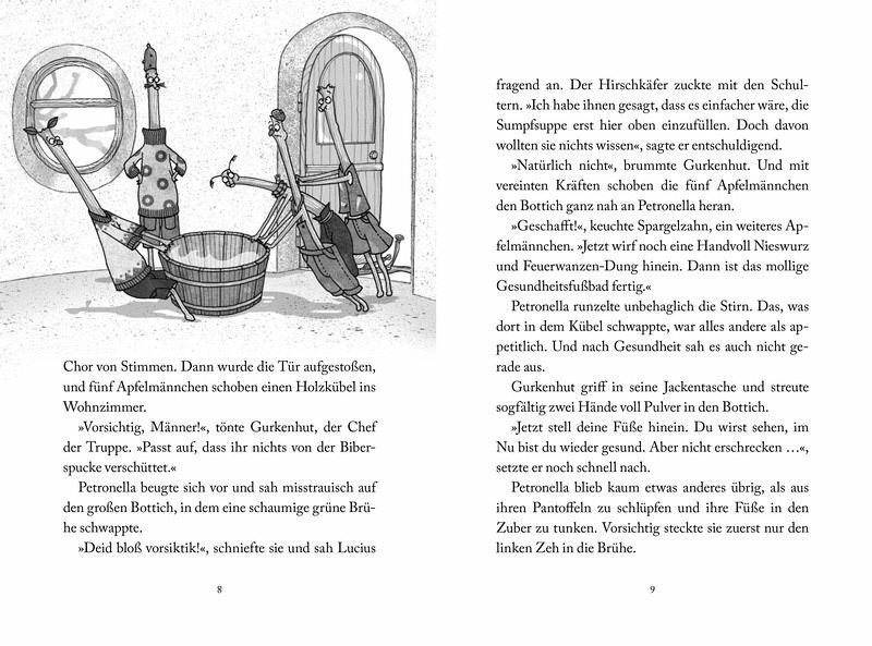Die Charaktere - magische wie menschliche - sind liebevoll und detailliert gestaltet. Es wimmelt nur so von magischen Wesen, z. B. die Apfelmännchen Gurkenhut und Spargelzahn, der Hirschkäfer Lucius oder Feen, die in Hyazinthen leben.
