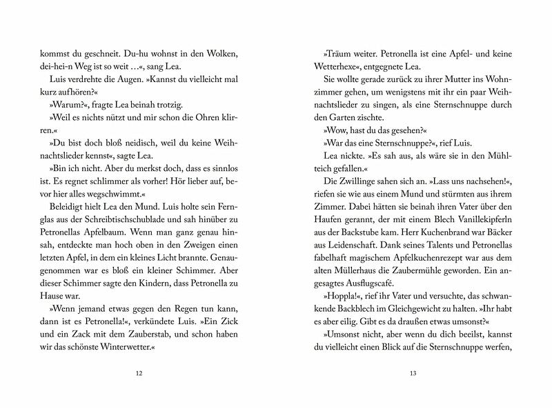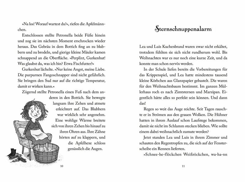 Petronella Apfelmus, die kleine Apfelhexe, lebt - wie soll es anders sein - in einem Apfel am Baum. Letzterer steht im Garten der Zwillinge Luis und Lea Kuchenbrand.