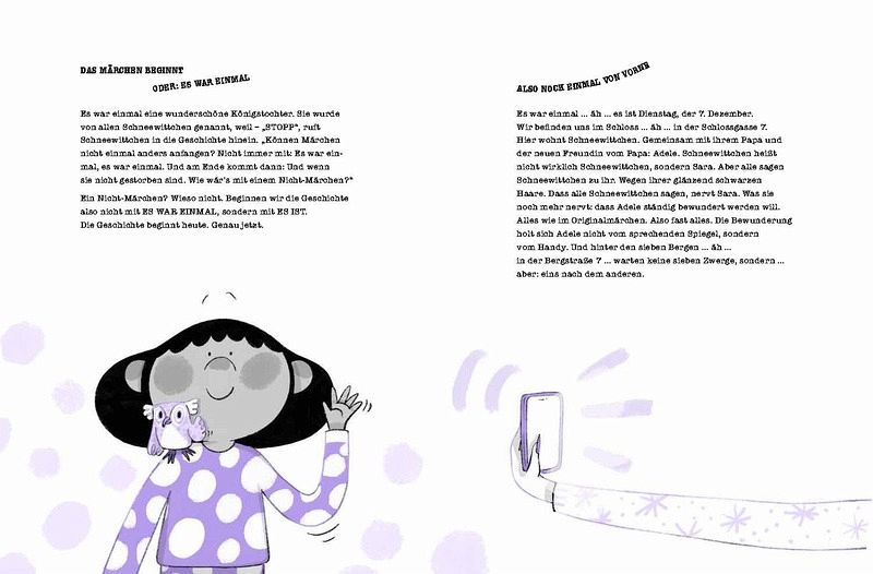 Sara wohnt in der Schlossgasse 7 und wird wegen ihrer glänzend schwarzen Haare ständig Schneewittchen genannt. Das nervt sie ordentlich. Genauso wie ihre Instagrimm-süchtige Stiefmutter Adele, die sich ihre Bewunderung aus dem Handy holt. Sie macht ständig Fotos von Sara und meldet sie bei der Castingshow »Schön wie Schneewittchen« an. Sara macht widerwillig mit und trifft im Fernsehstudio auf ihre sieben Konkurrent_innen, mit denen sie drei Tschällentschis bestreiten muss. Aber Sara denkt nicht daran, die Show zu gewinnen, sie hat ganz andere Pläne ...