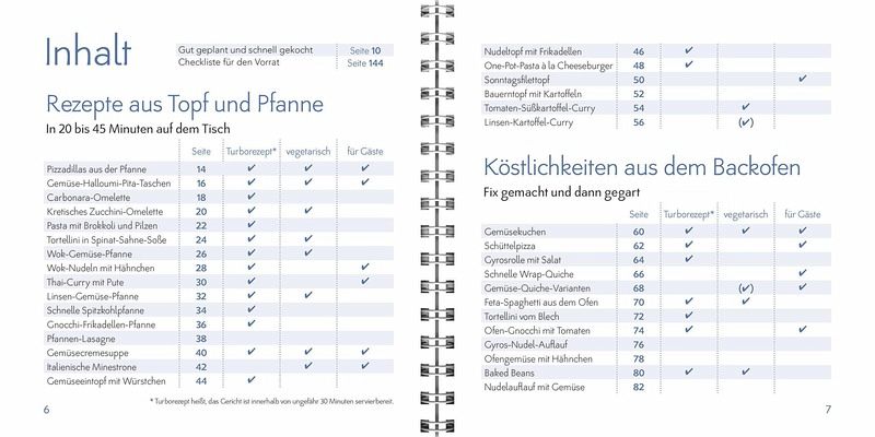 Wenn in kurzer Zeit ein leckeres Gericht auf dem Tisch stehen soll, dann kommt dieses Kochbuch gerade richtig. Es enthält 60 unkomplizierte Kochideen für jeden Tag, die sich schnell zubereiten oder gut vorbereiten lassen. Sie sind ideal für alle, die nicht lange in der Küche stehen möchten, aber Wert auf Abwechslung im Speiseplan legen.