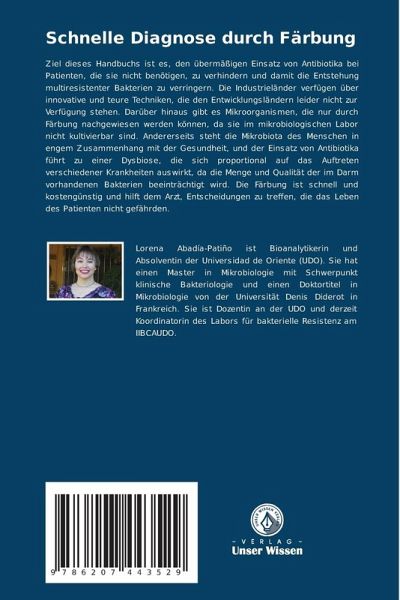Ziel dieses Handbuchs ist es, den übermäßigen Einsatz von Antibiotika bei Patienten, die sie nicht benötigen, zu verhindern und damit die Entstehung multiresistenter Bakterien zu verringern. Die Industrieländer verfügen über innovative und teure Techniken, die den Entwicklungsländern leider nicht zur Verfügung stehen. Darüber hinaus gibt es Mikroorganismen, die nur durch Färbung nachgewiesen werden können, da sie im mikrobiologischen Labor nicht kultivierbar sind. Andererseits steht die Mikrobiota des Menschen in engem Zusammenhang mit der Gesundheit, und der Einsatz von Antibiotika führt zu einer Dysbiose, die sich proportional auf das Auftreten verschiedener Krankheiten auswirkt, da die Menge und Qualität der im Darm vorhandenen Bakterien beeinträchtigt wird. Die Färbung ist schnell und kostengünstig und hilft dem Arzt, Entscheidungen zu treffen, die das Leben des Patienten nicht gefährden.