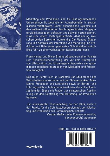 Frank Himpel und Oliver Bracht präsentieren einen Ansatz zum Schnittstellencontrolling, der vor dem Hintergrund von Effektivitäts- und Effizienzgesichtspunkten die systematisch gestaltete Interaktion von Marketing und Produktion ermöglicht.