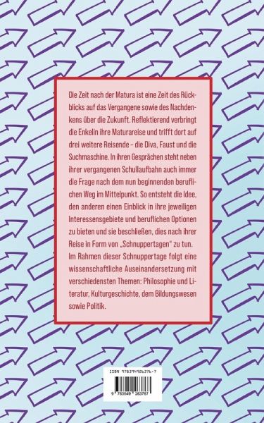 Die Zeit nach der Matura ist eine Zeit des Rückblicks auf das Vergangene sowie des Nachdenkens über die Zukunft. Reflektierend verbringt die Enkelin ihre Maturareise und trifft dort auf drei weitere Reisende - die Diva, Faust und die Suchmaschine. In ihren Gesprächen steht neben ihrer vergangenen Schullaufbahn auch immer die Frage nach dem nun beginnenden beruflichen Weg im Mittelpunkt. So entsteht die Idee, den anderen einen Einblick in ihre jeweiligen Interessensgebiete und beruflichen Optionen zu bieten und sie beschließen, dies nach ihrer Reise in Form von "Schnuppertagen" zu tun.Im Rahmen dieser Schnuppertage folgt eine wissenschaftliche Auseinandersetzung mit verschiedensten Themen: Philosophie und Literatur, Kulturgeschichte, dem Bildungswesen sowie Politik.