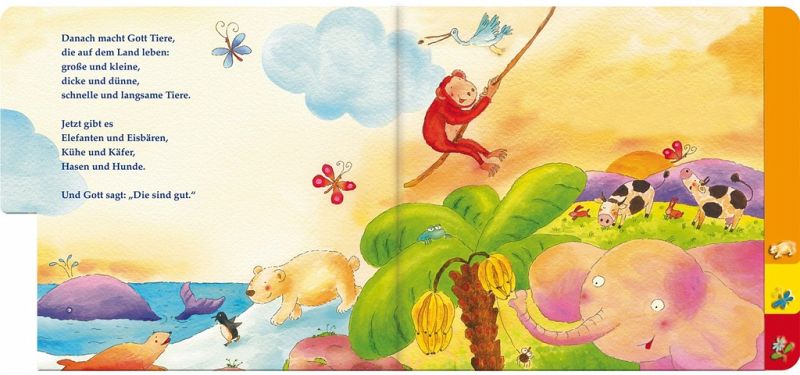 Gottes Welt ist bunt und schön!Kindgerecht nacherzählt und liebevoll illustriert lernen schon die Kleinsten die biblische Schöpfungsgeschichte kennen.