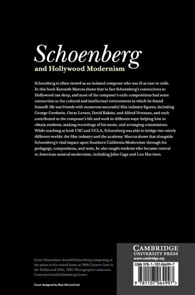 Schoenberg is often viewed as an isolated composer who was ill-at-ease in exile. In this book Kenneth H. Marcus shows that in fact Schoenberg's connections to Hollywood ran deep, and most of the composer's exile compositions had some connection to the cultural and intellectual environment in which he found himself. He was friends with numerous successful film industry figures, including George Gershwin, Oscar Levant, David Raksin and Alfred Newman, and each contributed to the composer's life and work in different ways: helping him to obtain students, making recordings of his music, and arranging commissions. While teaching at both the University of Southern California and the University of California, Los Angeles, Schoenberg was able to bridge two utterly different worlds: the film industry and the academy. Marcus shows that alongside Schoenberg's vital impact upon Southern California Modernism through his pedagogy, compositions and texts, he also taught students who became central to American musical modernism, including John Cage and Lou Harrison.