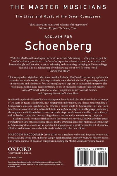 In this fully updated edition of his long-indispensable study, Malcolm MacDonald takes advantage of 30 years of recent scholarship, new biographical information, and deeper understanding of Schoenberg's aims and significance to produce a superb guide to Schoenberg's life and work. MacDonald demonstrates the indissoluble links among Schoenberg's musical language (particularly the enigmatic and influential twelve-tone method), his personal character, and his creative ideas, as well as the deep connection between his genius as a teacher and as a revolutionary composer. Exploring newly considered influences on the composer's early life, MacDonald offers a fresh perspective on Schoenberg's creative process and the emotional content of his music. For example, as a previously unsuspected source of childhood trauma, the author points to the Vienna Ringtheater disaster of 1881, in which hundreds of people were burned to death, including Schoenberg's uncle and aunt-whose orphaned children were then adopted by Schoenberg's parents. MacDonald brings such experiences to bear on the music itself, examining virtually every work in the oeuvre to demonstrate its vitality and many-sidedness. A chronology of Schoenberg's life, a work-list, an updated bibliography, and a greatly expanded list of personal allusions and references round out the study, and enhance this new edition.