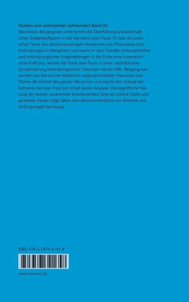 In »Schöne Seelen, groteske Körper« liest Maximilian Bergengruen die poetischen Texte Jean Pauls als Philosophie bzw. Anthropologie in Metaphern. Jean Pauls widersprüchliche Theoreme zum Thema der Einheit des ganzen Menschen werden, so Bergengruens Analyse, literarisch in Verbindung gesetzt, in Konflikt geführt und poetologisch reflektiert. Der Text bietet dem Leser die Möglichkeit, sich Jean Pauls Werk auf einem neuen Wege zu nähern.Maximilian Bergengruen unternimmt in »Schöne Seelen, groteske Körper« die Überführung wissenschaftlicher Gedankenfiguren in die Narration Jean Pauls. Er liest die poetischen Texte des deutschsprachigen Romanciers als Philosophie bzw. Anthropologie in Metaphern und macht in dem Transfer philosophischer und anthropologischer Fragestellungen in die Prosa eine inszenatorische Kraft aus, welche die Texte Jean Pauls zu einer »ästhetischen Dynamisierung anthropologischer Theorien« werden läßt. Bergengruen erörtert die literarische Reflektion widersprüchlicher Theoreme zum Thema der Einheit des ganzen Menschen und macht den »Kampf der Extreme« bei Jean Paul zum Inhalt seiner Analyse. Die begriffliche Fassung der beiden unvereinbar erscheinenden Teile als schöne Seele und grotesker Körper trägt dabei dem Wechselverhältnis von Ästhetik und Anthropologie Rechnung.Durch die Verortung der poetischen Texte Jean Pauls in die Anthropologie und die Integration von Theorieinformationen, Hintergründen der Ästhetik sowie philosophischen Fragestellungen in die Romananalysen gelingt es Bergengruen, eine Lücke in der Jean-Paul-Forschung zu schließen. Der vorliegende Text stellt somit ein wertvolles Zeugnis einer literaturwissenschaftlichen Neuorientierung dar und bietet dem Leser die Möglichkeit, sich Jean Pauls widersprüchlichen Konzepten von Spiritualismus und Materialismus auf einem neuen, spannenden Wege zu nähern.
