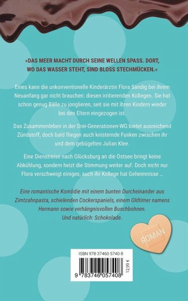 Eine locker - fluffige Liebeskomödie mit Wortwitz und Herz...Eines kann die unkonventionelle Kinderärztin Flora Sandig bei ihrem Neuanfang gar nicht brauchen: diesen irritierenden Kollegen. Sie hat schon genug Bälle zu jonglieren, seit sie mit ihren Kindern wieder bei den Eltern eingezogen ist. Das Zusammenleben in der Drei-Generationen-WG bietet ausreichend Zündstoff, doch bald fliegen auch knisternde Funken zwischen ihr und dem gebügelten Julian Klee.Eine Dienstreise nach Glücksburg an die Ostsee bringt keine Abkühlung, sondern heizt die Stimmung weiter auf.Eine romantische Komödie mit einem bunten Durcheinander aus Zimtzahnpasta, schielenden Cockerspaniels, einem Oldtimer namens Hermann sowie verhängnisvollen Buschbohnen. Und natürlich: Schokolade. Leserstimmen:Ich habe einen lustigen Roman erwartet - den habe ich bekommen. Das Buch hat einen lockeren Schreibstil und ich musste oft lachen - auch, weil ich mich ganz hervorragend in die Protagonistin Flora reinfühlen konnte. Aber auch wenn es durchgehend humorvoll geschrieben ist, zeigt es eine Frau, die kämpfen muss. Ein Spagat zwischen Job und Familie - alleinerziehend ist kein Spaß, besonders, wenn man in seinem Job ernst genommen werden will. Das Buch zeigt die Zerrissenheit zwischen Erwartungshaltung und eigenen Wünschen. Flora ist ein wirklich toller Charakter. Ich mochte ihre Entwicklung in der Geschichte sehr.Megatolle Unterhaltung - witzig geschrieben, romantisch - aber nicht kitschig, spannend, und dann dieser unglaubliche Wortwitz! Ein Traum dieses Buch - unbedingt weiterzuempfehlen!Das Buch macht gute Laune, der lockere Schreibstil hat mich begeistert. Die Geschichte beginnt leicht und fluffig, die Protagonistin Flora scheint ihr frisch vom Ehemann getrenntes Leben mit Job als Ärztin in einer Kinderklinik und zwei kleinen Kindern gut zu meistern. Ach ja, bei ihren Eltern wohnt sie auch wieder. Man ahnt schon, dass es nicht einfach so vergnügt weitergehen kann. Und tatsächlich, Flora verknalltsich in einen Kollegen, und mit dem Herzflattern kommen langsam auch Konflikte zur Oberfläche. Für mich wurde das Buch ab da richtig gut: Wie Flora versucht die Bälle der alleinerziehenden Mutter hochzuhalten, wie die Eltern sich einmischen, wie die Trennung nachhallt, das erzählt die Autorin wunderbar anschaulich, berührend und trotzdem lustig. Das Buch hat mich gefesselt. Es war lustig und spannend zugleich. Es ist gut zu lesen und man fiebert mit bei Flora und Julian.