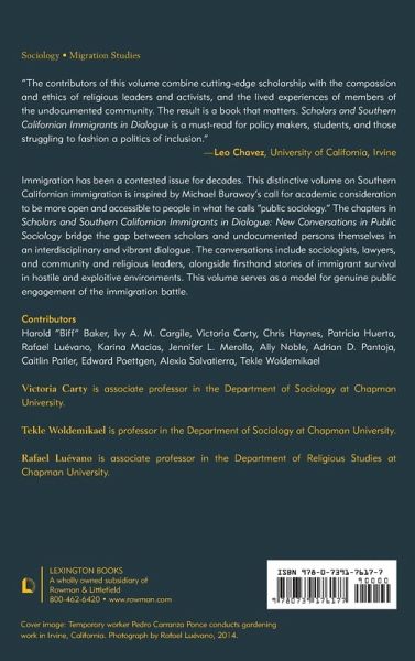 Scholars and Southern Californian Immigrants in Dialogue: New Conversations in Public Sociology employs public sociology to bring together academics and undocumented voices in vibrant conversation about immigration in Southern California. The dialogue offers compelling insights concerning reasons for immigration and what happens to Latinos/as when they migrate to the United States.
