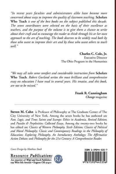 "In recent years faculties and administrators alike have become more concerned about ways to improve the quality of classroom teaching. 'Scholars Who Teach' is one of the best books on the subject published this decade. The seven contributors were selected on the basis of their excellence as teachers, and the purpose of the volume is to give them a chance to wirte about their craft and to encourage the reader to think through his or her own approach to the art of teaching. The book deserves to be widely read both by those who want to improve their art and by those who want others to teach well." Charles C. Cole, Jr. Executive Director, The Ohio Program in the Humanities "We may all take some comfort and considerable instruction from 'Scholars Who Teach'. Robert Gurland writes the most brilliant and comprehensive essay on education I have read in several years. His treatise, and this book, are not to be missed." Frank R. Cunningham, 'Change' magazine