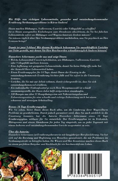 Entdecken Sie die Kraft der richtigen Ernährung zur Linderung Ihrer Verdauungsprobleme mit "Das große Kochbuch: 150 entzündungshemmende und leckere Rezepte". Erstellt von der renommierten Ernährungsexpertin Hannelore Ackermann, ist dieses Buch ein Segen für alle, die unter lästigen Magen-Darm-Beschwerden wie Blähungen, Sodbrennen, Gastritis oder Völlegefühl leiden.Dieses umfassende Kochbuch ist mehr als nur eine Sammlung von Rezepten. Es ist ein Wegweiser für eine entzündungshemmende Ernährung, die speziell darauf abzielt, Verdauungsprobleme zu lindern und Ihr Wohlbefinden zu steigern. Mit einer sorgfältig kuratierten Liste von Lebensmitteln, die bekanntermaßen Unverträglichkeiten auslösen, hilft es Ihnen, die richtigen Entscheidungen für Ihre Ernährung zu treffen.In diesem Buch finden Sie:Eine detaillierte Analyse von Lebensmitteln, die Unverträglichkeiten verursachen können.Eine umfassende Tabelle mit empfohlenen Lebensmitteln, um Fehlgriffe bei Ihrer Ernährung zu vermeiden.Einen praktischen 14-Tage-Ernährungsplan, der Ihnen den Einstieg in eine entzündungshemmende Ernährungsweise erleichtert.Leckere und praktische Gerichte, die Sie problemlos zur Arbeit mitnehmen können.Einen maßgeschneiderten Einkaufszettel, der auf Ihre Rezeptauswahl abgestimmt ist und Ihnen hilft, effizient und zielgerichtet einzukaufen.Über 150 Rezepte aus 11 verschiedenen Kategorien, komplett mit Nährwertangaben und Zubereitungszeiten, perfekt für einen beschäftigten Alltag.Als Bonus erhalten Sie einen exklusiven 14-Tage-Ernährungsplan von Hannelore Ackermann, der Ihnen hilft, zu jeder Tageszeit ein entzündungshemmendes Gericht zur Hand zu haben. Dieses Buch ist Ihr ultimativer Begleiter auf dem Weg zu einer besseren Verdauungsgesundheit und einem erfüllteren Leben ohne die Einschränkungen und Unannehmlichkeiten von Verdauungsproblemen.