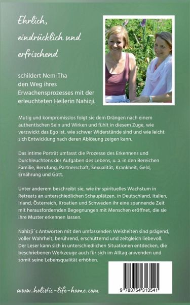 Ehrlich, eindrücklich und erfrischend schildert Nem-Tha den Weg ihres Erwachensprozessesmit der erleuchteten Heilerin Nahizji.Mutig und kompromisslos folgt sie dem Drängen nach einem authentischen Sein und Wirken und fühlt in diesem Zuge, wie verzwickt das Ego ist, wie schwer Widerstände sind und wie leicht sich Entwicklung nach deren Ablösung zeigen kann. Das intime Portrait umfasst die Prozesse des Erkennens und Durchleuchtens der Aufgaben des Lebens, u.a. in den Bereichen Familie, Berufung, Partnerschaft, Sexualität, Krankheit, Geld, Ernährung und Gott.Unter anderem beschreibt sie, wie ihr spirituelles Wachstum in Retreats an unterschiedlichen Schauplätzen, in Deutschland, Italien, Irland, Österreich, Kroatien und Schweden ihr eine spannende Zeit mit herausfordernden Begegnungen mit Menschen eröffnet, die sie ihre Muster erkennen lassen.Nahizji`s Antworten mit den umfassenden Weisheiten sind prägend, voller Wahrheit, berührend, erschütternd und zeitgleich liebevoll.Der Leser kann sich in unterschiedlichen Situationen entdecken, die beschriebenen Werkzeuge auch für sich im Alltag anwenden und somit seine Lebensqualität erhöhen.