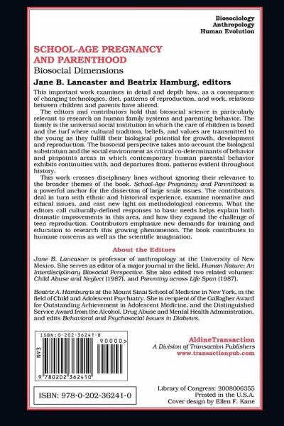 This important work examines in detail and depth how, as a consequence of changing technologies, diet, patterns of reproduction, and work, relations between children and parents have altered. The editors and contributors hold that biosocial science is particularly relevant to research on human family systems and parenting behavior. The family is the universal social institution in which the care of children is based and the turf where cultural tradition, beliefs, and values are transmitted to the young as they fulfill their biological potential for growth, development and reproduction. The biosocial perspective takes into account the biological substratum and the social environment as critical co-determinants of behavior and pinpoints areas in which contemporary human parental behavior exhibits continuities with and departures from, patterns evident throughout history. This work crosses disciplinary lines without ignoring their relevance to the broader themes of the book. School age pregnancy and parenthood is a powerful anchor for the dissection of large scale issues. The contributors deal in turn with ethnic and historical experience, examine normative and ethical issues, and cast new light on methodological concerns. What the editors call culturally-defined responses to basic needs helps explain both dramatic improvements in this area, and how they expand the challenge of teen reproduction. Contributors emphasize new demands for training and education to research this growing phenomenon. The book contributes to humane concerns as well as the scientific imagination.