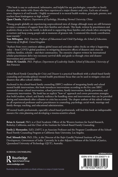 School-Based Family Counseling for Crisis and Disaster is a practical handbook with a school-based family counseling and interdisciplinary mental health practitioner focus that can be used to mitigate crises and disasters that affect school children.