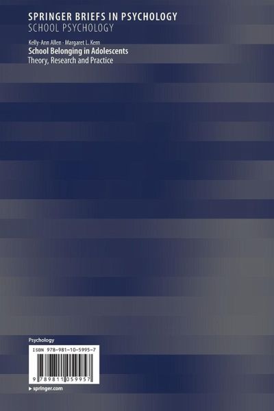 Chapter 1: General Introduction.- 1.1 The Benefits of General Belonging.- 1.2 The importance of Belonging during Adolescence.- 1.3 An Overview of the text.- Chapter 2: What is School Belonging?.- 2.1 In Pursuit of a Definition.- 2.2 Other Terminology.- 2.3 Theoretical Underpinnings.- 2.4 A Socio-Ecological Approach to School Belonging.- 2.5 The Levels of the Socio-Ecological System Analysed in the text.- 2.6 Why We Need to Study School Belonging.- 2.7 A Research-Practice Gap.- Chapter 3: Literature Review Outlining the Major Influences of School Belonging.- 3.1 Existing Reviews of School Belonging.- 3.2 Measurements of Belonging.- 3.3 Salient Themes of School Belonging.- 3.4 A Note on Causal Relationships.- Chapter 4: Meta-Analysis of the Major Influences of School Belonging.- 4.1 Using Meta-analysis to Explore School Belonging.- ^sion Statements.- 5.2 The Focus of Schools: Academics and beyond.- 5.3 What do School Priorities Mean for School Belonging?.- Chapter 6: School Belongingand Student Achievement.- 6.1 School belonging and academic achievement.- 6.2 Implications for School Belonging.- Chapter 7: A Multi-level Framework of School Belonging.- 7.1 The Socio-Ecological Framework of School Belonging.- 7.2 Evidence-Based Practices that Promote School Belonging.- 7.3 Strengths and Limitations of the Framework.- 7.4 Future Research.- Chapter 8: Overall Discussion.- 8.1 Summary of the text.- 8.2 The Main Issue Revisited.- 8.3 Reconceptualising School Belonging.- 8.4 Final Conclusions.- References.- Appendices.