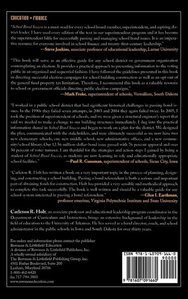 The nuts and bolts of securing the funding for facility construction, a component of the building process usually overlooked in training administrators, are clearly outlined in chapters that begin with a look at the problem of aging schools and follow through the planning and project development phases to the bond campaign and election day. Filled with tips, checklists, and insights on the details from experienced school leaders, this is the perfect guide to consult every step on the way to victory.