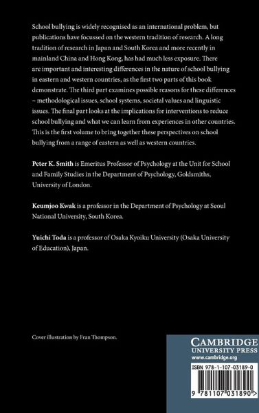 School bullying is widely recognized as an international problem, but publications have focussed on the Western tradition of research. A long tradition of research in Japan and South Korea, and more recently in mainland China and Hong Kong, has had much less exposure. There are important and interesting differences in the nature of school bullying in Eastern and Western countries, as the first two parts of this book demonstrate. The third part examines possible reasons for these differences - methodological issues, school systems, societal values and linguistic issues. The final part looks at the implications for interventions to reduce school bullying and what we can learn from experiences in other countries. This is the first volume to bring together these perspectives on school bullying from a range of Eastern as well as Western countries.