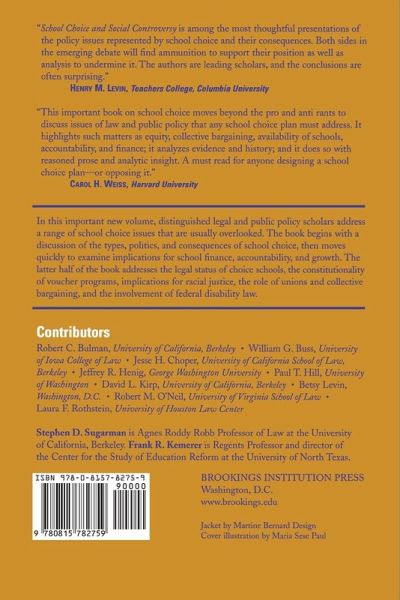 In this important new volume, distinguished legal and public policy scholars address issues that are critical to the successful drafting and implementation of school choice programs, yet are usually overlooked in the choice debate. They explore whether school choice is a threat or an opportunity to the many children who are largely deprived of choice today and they offer a variety of perspectives, with some authors enthusiastic, others more skeptical. The book begins with a discussion of the types and extent of school choice, what is known about its consequences, and how politics has influenced its development. It then focuses on three important public policy issues: how school choice can revolutionize the way schools are financed, what policy interventions are necessary to increase the supply of choice schools, and how choice programs can be held accountable to parents and the state without undermining institutional autonomy. The book addresses legal issues, including whether public and private choice schools will be required to observe student and teacher rights generally recognized in traditional public schools, how the religion and speech clauses of the First Amendment may affect the participation of religious schools in school choice programs, whether school choice will enhance or aggravate opportunities for racial justice, what the implications of school choice are for teacher unions and collective bargaining, and whether children with disabilities will be accommodated in school choice programs under federal disability law. Throughout the book, the authors offer recommendations for public policy development. The contributors are Jeffrey Henig, Robert Bulman and David L. Kirp, Paul T. Hill, Robert M. O'Neil, Jesse H. Choper, Betsy Levin, William G. Buss, and Laura F. Rothstein. Stephen D. Sugarman is Agnes Roddy Robb Professor of Law at the University of California, Berkeley. Frank R. Kemerer is Regents Professor and director of the Center for