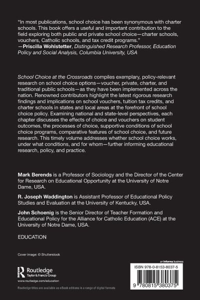 School Choice at the Crossroads compiles exemplary, policy-relevant research on school choice options-voucher, private, charter, and traditional public schools-as they have been implemented across the nation. Renowned contributors highlight the latest rigorous research findings and implications on school vouchers, tuition tax credits, and charter schools in states and local areas at the forefront of school choice policy. Examining national and state-level perspectives, each chapter discusses the effects of choice and vouchers on student outcomes, the processes of choice, supportive conditions of school choice programs, comparative features of school choice, and future research. This timely volume addresses whether school choice works, under what conditions, and for whom-further informing educational research, policy, and practice.