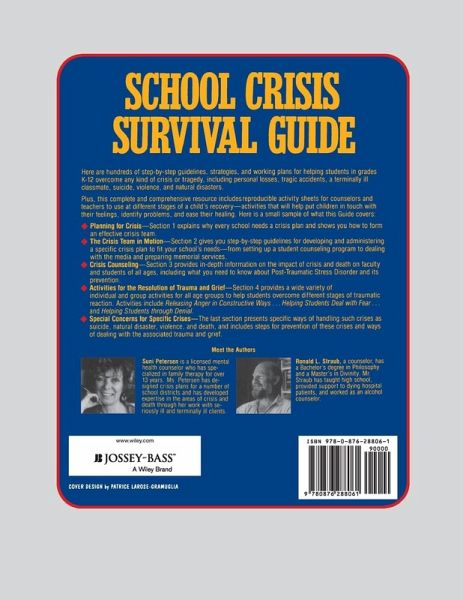 Here are hundreds of step-by-step guidelines, strategies, and working plans for helping students in grades K-12 overcome any kind of crisis or tragedy, including personal losses, tragic accidents, a terminally ill classmate, suicide, violence, and natural disasters. Plus, this complete and comprehensive resource includes reproducible activity sheets for counselors and teachers to use at different stages of a child's recovery - activities that will help put children in touch with their feelings, identify problems, and easy their healing. Here is a small sample of what this Guide covers: * Planning for Crisis: Section 1 explains why every school needs a crisis plan and shows you how to form and effective crisis team * The Crisis Team in Motion: Section 2 gives you step-by-step guidelines for developing and administering a specific crisis plan to fit your school's needs - from setting up a student counseling program to dealing with the media and preparing memorial day services. * Crisis Counseling: Section 3 provides in-depth information on the impact of crisis and death on faculty and students of all ages, including what you need to know about Post-Traumatic Stress Disorder and its prevention. * Activities for the Resolution of Trauma and Grief: Section 4 provides a wide variety of individual and group activities for all age groups to help overcome different stages of traumatic reaction. Activates include Releasing Anger in Constructive Ways ... Helping Students Deal with Fear ... and Helping Students through Denial. * Special Concerns for Specific Crises: The last section presents specific way of handling such crises as suicide, natural disaster, violence, and death, and includes steps for prevention of theses crises and ways of dealing with the associated trauma and grief.