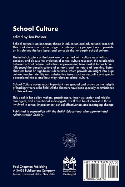 `I waited with great anticipation to receive Jon Prosser's book School Culture. The wait was worth it and I wasn't to be disappointed... This is a fine book bringing to a reader a credible and solid set of work' - Youth and Policy `Jon Prosser has put together an eclectic volume. School Culture is not isolated from out of school forces, most of the authors argue. Jon Prosser and Terry Warbuton's piece analyzing the visual representation of schools and teaching shows this in a looking-glass manner. The different chapters challenge us to think again about what we mean by ethos and atmosphere. What the volume demonstrates is just how difficult and challenging it is to define what constitutes a school's culture' - Journal of Education for Teaching