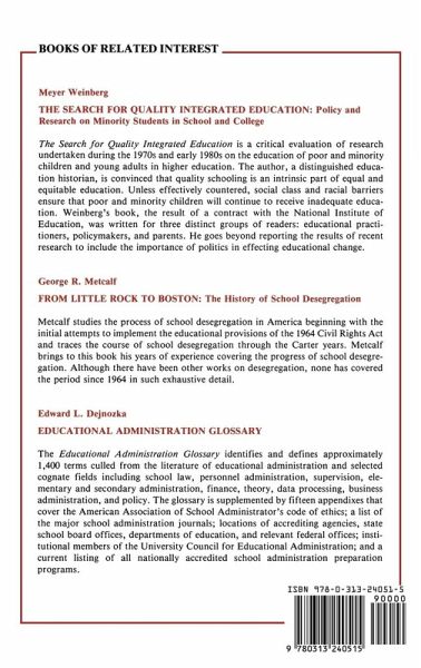 "School Desegregation Plans That Work can serve as an excellent planning guide for school districts that must formulate and implement a desegregation plan. Willie not only reviews the general history of desegregation and the litigation that brought it about, but he also provides reviews of desegregation efforts in four cities--Boston, Milwaukee, Seattle, and Atlanta. ... These case studies are highly credible, because these sections of the book were written by personnel from the school districts involved. Chapter 5 is the best discussion of desegregation at the local level that [the reviewer has] encountered anywhere. ... Disagree with Wille's thesis and his emphases if you will. But, if you are concerned with urban education, be sure to read this book."-Phi Delta Kappan