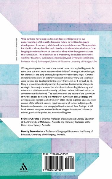 Writing development has been a key area of research in applied linguistics for some time but most work has focused on children's writing at particular ages, for example, at the early primary, late primary or secondary stage. Christie and Derewianka draw on extensive research in both primary and secondary years to trace the developmental trajectory from age 5 or 6 through to 18. Using a systemic functional grammar, they outline developmental changes in writing in three major areas of the school curriculum - English, history, and science - as children move from early childhood to late childhood and on to adolescence and adulthood. The book considers the nature of the curriculum at various stages, discussing the interplay of curriculum goals, pedagogy and developmental changes as children grow older. It also explores how emergent control of the different subjects requires control of various subject specific literacies and considers the pedagogical implications of their findings. It will be of interest to anyone involved in the writing performance of children in schools, particularly applied and educational linguists.