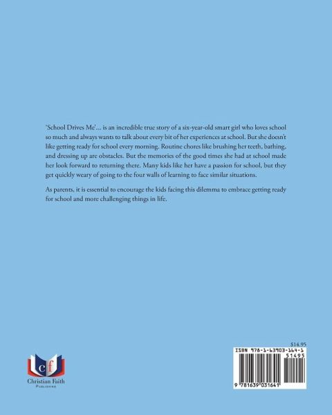 'School Drives Me'... is an incredible true story of a six-year-old smart girl who loves school so much and would always want to talk about every bit of her experiences at school. But she doesn't like getting ready for school every morning. Routine chores like brushing her teeth, bathing, and dressing up are obstacles. But the memories of the good times she had at school made her look forward to returning there. Many kids like her have a passion for school, but they get quickly weary of going to the four walls of learning to face similar situations. As parents, it is essential to encourage the kids facing this dilemma to embrace getting ready for school and more challenging things in life.
