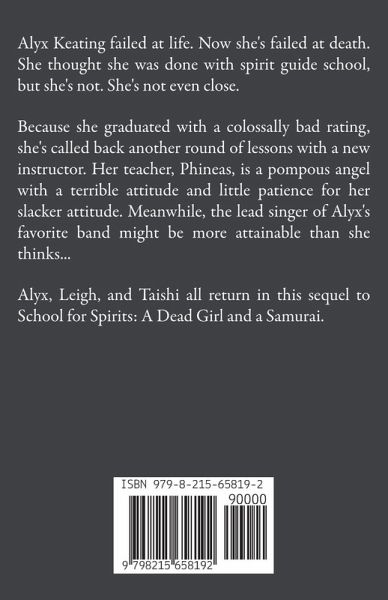 Alyx Keating failed at life. Now she's failed at death. She thought she was done with spirit guide school, but she's not. She's not even close. Because she graduated with a colossally bad rating, she's called back another round of lessons with a new instructor. Her teacher, Phineas, is a pompous angel with a terrible attitude and little patience for her slacker attitude. Meanwhile, the lead singer of Alyx's favorite band might be more attainable than she thinks... Alyx, Leigh, and Taishi all return in this sequel to School for Spirits: A Dead Girl and a Samurai.