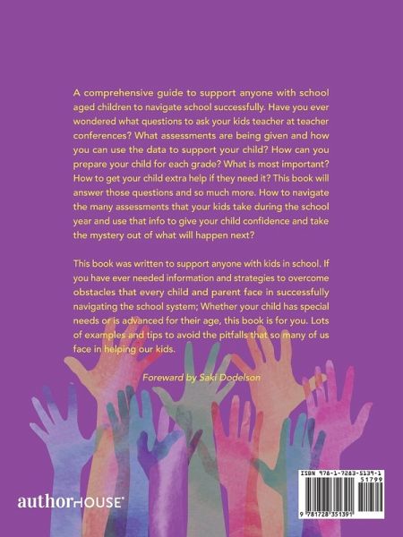 A comprehensive guide to support anyone with school aged children to navigate school successfully. Have you ever wondered what questions to ask your kids teacher at teacher conferences? What assessments are being given and how you can use the data to support your child? How can you prepare your child for each grade? What is most important? How to get your child extra help if they need it? This book will answer those questions and so much more. How to navigate the many assessments that your kids take during the school year and use that info to give your child confidence and take the mystery out of what will happen next? A comprehensive guide to navigating the school system for any person with school aged children.