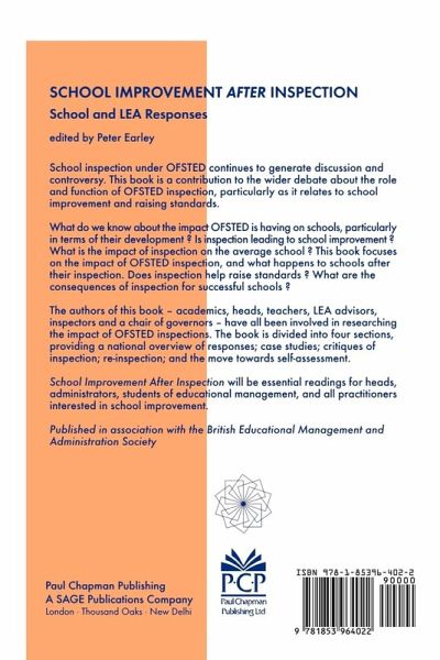 Introduction - Peter Earley PART ONE: SCHOOL, GOVERNING BODY AND LEA RESPONSES: AN OVERVIEW OFSTED and Afterwards? Schools Responses to Inspection - Janet Ouston and Jacqueline Davies Governing Bodies and School Inspection - Peter Earley Potential for Empowerment? Partners in Pursuit of Quality - Margaret Wood LEA Support for School Improvement after Inspection PART TWO: CASE STUDIES The Use and Impact of OFSTED in a Primary School - Tony Dimmer and Jacky Metiuk Brookfield Special School - Vanessa Aris, Jim Davies and Peter Johnson Recovery from Failure Responding to School Inspection - Doug Close Focusing on Development Raising Standards and Raising Morale - Helen Hosker and Sue Robb A Case Study of Change PART THREE: SCHOOL RESPONSES: TOWARDS A CRITIQUE OF INSPECTION Inspection and Change in the Classroom - Geoff Lowe Rhetoric and Reality? Inspection and the School Improvement Hoax - Peter Lonsdale and Carl Parsons School Improvement or School Control? Teachers Views on the Long Term Value of Inspection - Nigel Cromey-Hawke Inspection without Direction - Margaret Mathieson and Mel Vlaeminke School s Responses to OFSTED Requirements in Moral and Spiritual Education PART FOUR: RE-INSPECTION AND BEYOND The Inspector Calls Again - Brian Fidler and Jacqueline Davies The Reinspection of Schools Conclusion - Peter Earley Towards Self-Assessment?