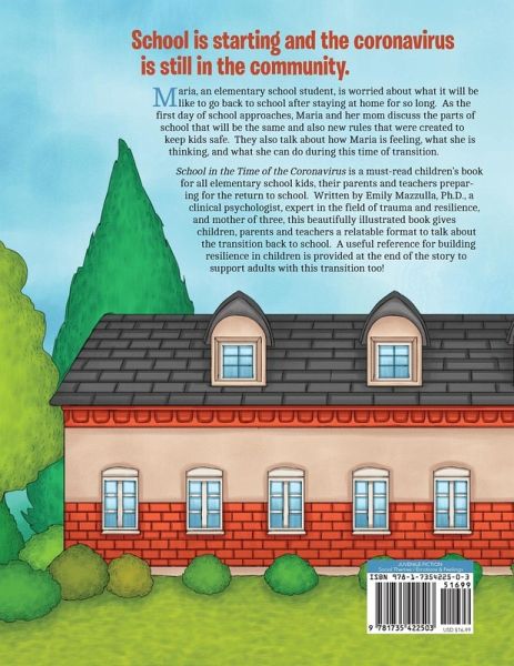 School is starting and the coronavirus is still in the community. Maria, an elementary school student, is worried about what it will be like to go back to school after staying at home for so long. As the first day of school approaches, Maria and her mom discuss the parts of school that will be the same and also new rules that were created to keep kids safe. They also talk about how Maria is feeling, what she is thinking, and what she can do during this time of transition. School in the Time of the Coronavirus is a must-read children's book for all elementary school kids, their parents and teachers preparing for the return to school in the fall of 2020. Written by Emily Mazzulla, Ph.D., a clinical psychologist, expert in the field of trauma and resilience, and mother of three, this beautifully illustrated book gives children, parents and teachers a relatable format to talk about the transition back to school. A useful reference for building resilience in children is provided at the end of the story to support adults with this transition too!