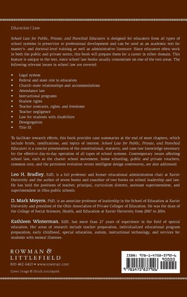 This book is a concise presentation of the constitutional, statutory, and case law knowledge necessary for the effective day-to-day operation of all types of school systems.