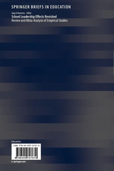 This highly detailed study maps four decades of evolution of the concept of what constitutes effective school leadership. It analyses the theoretical background to these developments and advocates the utility of thinking of a 'lean' form of school leadership that is comparable to the concept of 'meta-control'. A wide-ranging survey of the empirical research literature on leadership effects includes the presentation of results from earlier meta-analyses as well as a new meta-analysis on some 25 studies carried out between 2005 and 2010. This survey demonstrates that older reviews and meta-analyses were predominantly based on so-called 'direct effect' studies, while more recent studies have tried to quantify the indirect effects of leadership, mediated by other school variables.While acknowledging the relatively small total effect of leadership on student outcomes, the study does identify promising intermediary factors which, stimulated by specific leadership behaviours, impact on student performance. The book ends by drawing out wider implications for educational practice and policy, presented under headings such as 'schools need leadership', 'the toolkit of the school leader as a meta-controller', 'the special case of turning around failing schools' and 'efficiency of school leadership'. In passing, the authors make several suggestions about potentially fruitful next steps in researching the effects of school leadership.