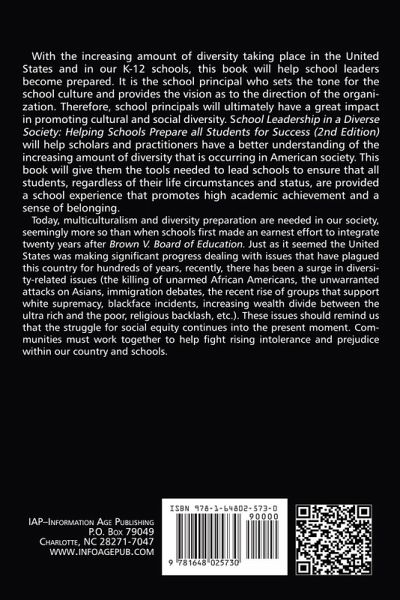With the increasing amount of diversity taking place in the United States and in our K-12 schools, this book will help school leaders become prepared. It is the school principal who sets the tone for the school culture and provides the vision as to the direction of the organization. Therefore, school principals will ultimately have a great impact in promoting cultural and social diversity. School Leadership in a Diverse Society: Helping Schools Prepare all Students for Success (2nd Edition) will help scholars and practitioners have a better understanding of the increasing amount of diversity that is occurring in American society. This book will give them the tools needed to lead schools to ensure that all students, regardless of their life circumstances and status, are provided a school experience that promotes high academic achievement and a sense of belonging. Today, multiculturalism and diversity preparation are needed in our society, seemingly more so than when schools first made an earnest effort to integrate twenty years after Brown V. Board of Education. Just as it seemed the United States was making significant progress dealing with issues that have plagued this country for hundreds of years, recently, there has been a surge in diversity-related issues (the killing of unarmed African Americans, the unwarranted attacks on Asians, immigration debates, the recent rise of groups that support white supremacy, blackface incidents, increasing wealth divide between the ultra rich and the poor, religious backlash, etc.). These issues should remind us that the struggle for social equity continues into the present moment. Communities must work together to help fight rising intolerance and prejudice within our country and schools.