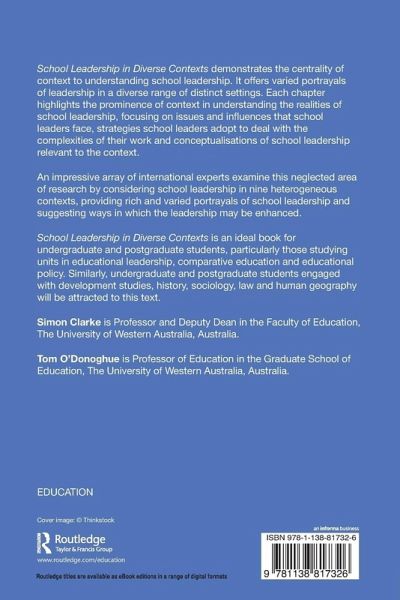 School Leadership in Diverse Contexts demonstrates the centrality of context to understanding school leadership. It offers varied portrayals of leadership in a diverse range of distinct settings. Each chapter highlights the prominence of context in understanding the realities of school leadership, focusing on issues and influences that school leaders face, strategies school leaders adopt to deal with the complexities of their work, and conceptualisations of school leadership relevant to the context. An impressive array of international experts examine this neglected area of research by considering school leadership in nine heterogeneous contexts, providing rich and varied portrayals of school leadership and suggesting ways in which the leadership may be enhanced. School Leadership in Diverse Contexts is an ideal book for undergraduate and postgraduate students, particularly those studying units in educational leadership, comparative education and educational policy. Similarly undergraduate and postgraduate students engaged with development studies, history, sociology, law, human geography will be attracted to this text.