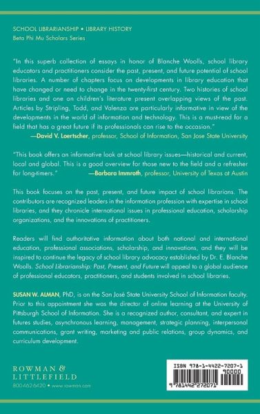 List of Illustrations Foreword by Sandra Hirsh Preface Chapter 1 A Brief Look at the Development of School Libraries in the United States by Ann Carlson Weeks and Diane L. Barlow Chapter 2 100 Years of School Library Standards: The Evolution of the School Library by Lois Wine Chapter 3 History of Children's Literature: Reflections in Today's Literature for Children by Elizabeth Tillapaugh Mahoney Chapter 4 Empowering Students to Inquire in a Digital Environment by Barbara K. Stripling Chapter 5 School Library Research: An International Perspective by Karen Gavigan Chapter 6 Professional Growth Through International Associations by Nancy Everhart Chapter 7 School Library Programs Around the World: From Training to Implementation by Lesley S.J. Farmer Chapter 8 Developing Expertise through Library Education by Mary Ann Harlan Chapter 9 Reimagining School Libraries to Lead Future Learning by Joyce Kasman Valenza Chapter 10 Fostering the Next Generation of School Library Researchers by April Dawkins Chapter 11 Seizing Opportunities: How the Pennsylvania School Librarians Association Developed a Model Common Core Standards-based Information Literacy Curriculum and Leveraged Other Opportunities to Help School Librarians Develop Professionally by Mary K. Biagini Chapter 12 School Library 4D: Disruption, Design, Data, and Dance by Ross J. Todd About the Editor About the Contributors