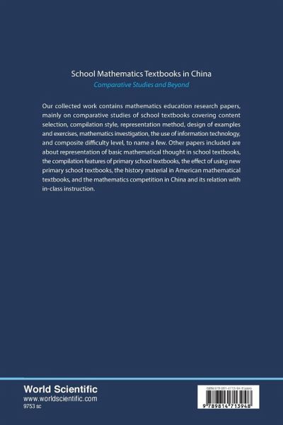 Our collected work contains mathematics education research papers. Comparative studies of school textbooks cover content selection, compilation style, representation method, design of examples and exercises, mathematics investigation, the use of information technology, and composite difficulty level, to name a few. Other papers included are about representation of basic mathematical thought in school textbooks, a study on the compilation features of elementary school textbooks, and a survey of the effect of using new elementary school textbooks.