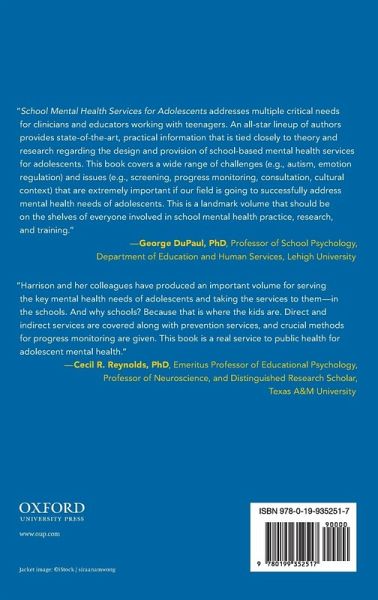 Evidence-based mental health services are lacking in many school systems, but especially in secondary schools. Adolescents who can benefit from school mental health services are those who experience disruptive behavior disorders, anxiety, depression, alcohol/drug use, sexual or physical abuse, chronic health problems, crisis situations such as suicidal ideation or attempts, natural disasters, and exposure to community or family violence that can interfere with academic success. Currently, one-half of students with emotional or behavioral disorders drop out of school prior to graduation,…mehr