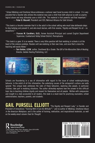 First Published in 2003. Schools are floundering in a sea of information with regard to the issue of school mobbing/bullying behavior. In the midst of all this information, the underlying causes of the antagonist's actions are sadly ignored. This unique book addresses the roots of these behaviors, exploring why people, in particular children, take part in mobbing situations. The author ultimately explores how the answer to this difficult topic lies in teaching children dignity and respect for themselves and all people. Written with compassion and insight in a style accessible to all readers, this book is a must-read for practicing counselors, school administrators, teachers, parents, and students